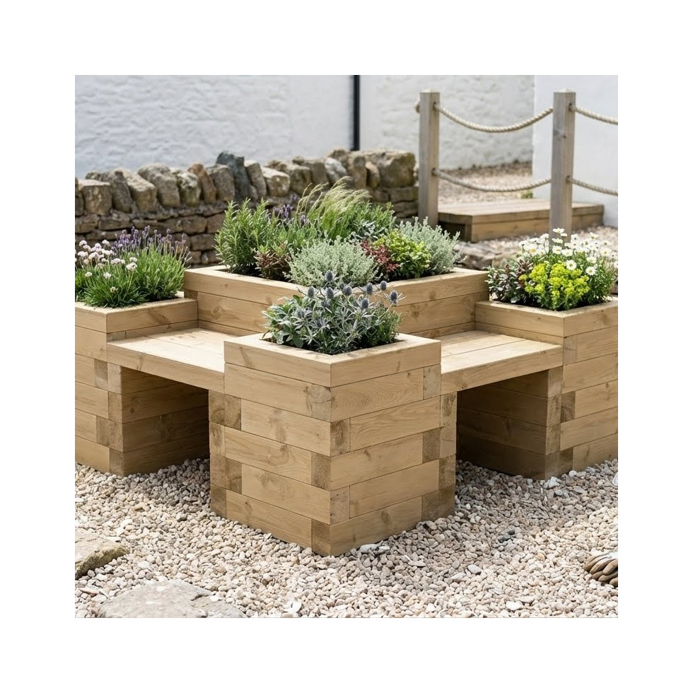 Banc de jardin d'angle - Jardinières multiniveaux / 150 x 150 x 65 cm
