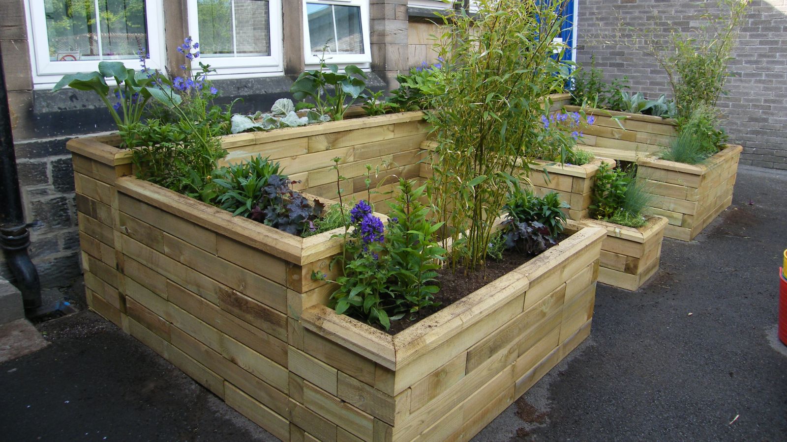 Les jardinières avec banc conviennent bien aux écoles et les bancs peuvent servir aux leçons en plein air ou de lieu de détente près de la nature, à la récréation du déjeuner. Les jardinières surélevées rondes sont idéales pour ajouter une forme naturelle dans un jardin sensoriel, avec des options multiniveaux pour qu’un grand nombre d’enfants de taille différente puissent accéder aux bacs.