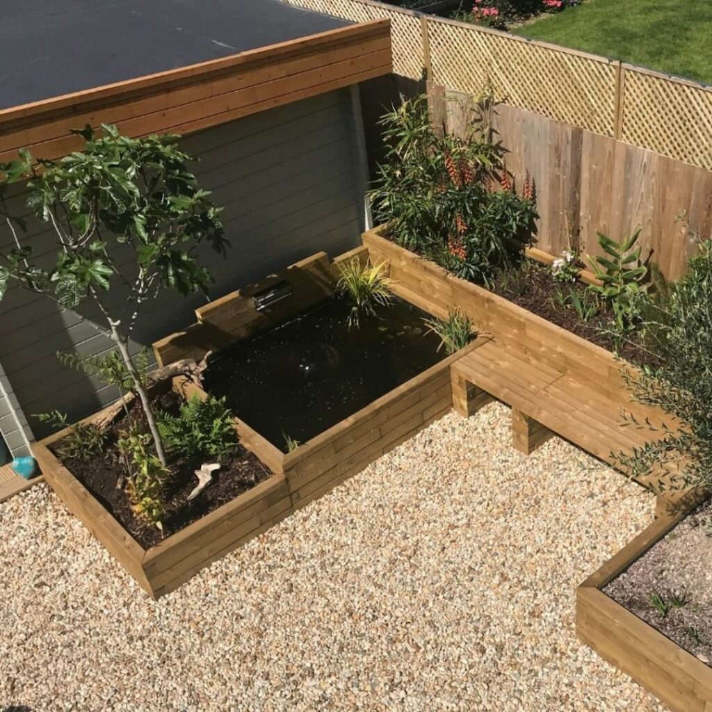 Les jardinières surélevées peuvent avoir n’importe quelles hauteur et forme pour s’adapter à votre jardin. Il est facile d’insérer une pièce d’eau. Parlez-en avec nos designers via notre service de conception gratuit et ils vous diront comment en intégrer une à votre design. Vous pouvez aussi créer un bassin surélevé pour avoir une pièce d’eau à part entière ou un espace zen de relaxation.