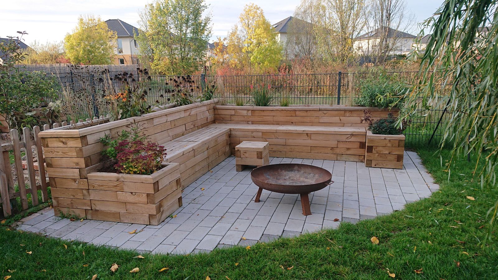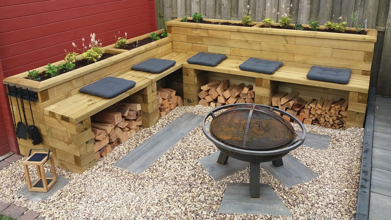 Les espaces difficiles ne sont pas un problème pour WoodBlocX ! Nous pouvons vous aider à transformer un espace difficile en un coin fonctionnel et magnifique. Cette banquette d’angle autour d’un brasero dans ce jardin récemment conçu en est un bel exemple. Très souvent, les maisons nouvellement construites ont ces espaces en plus en bout de jardin. Dans ce cas, le client souhaitait créer un coin brasero dans le cadre du vaste aménagement de son jardin. Nous avons donc conçu des banquettes qui suivent les contours de la palissade pour créer un coin brasero idéal.