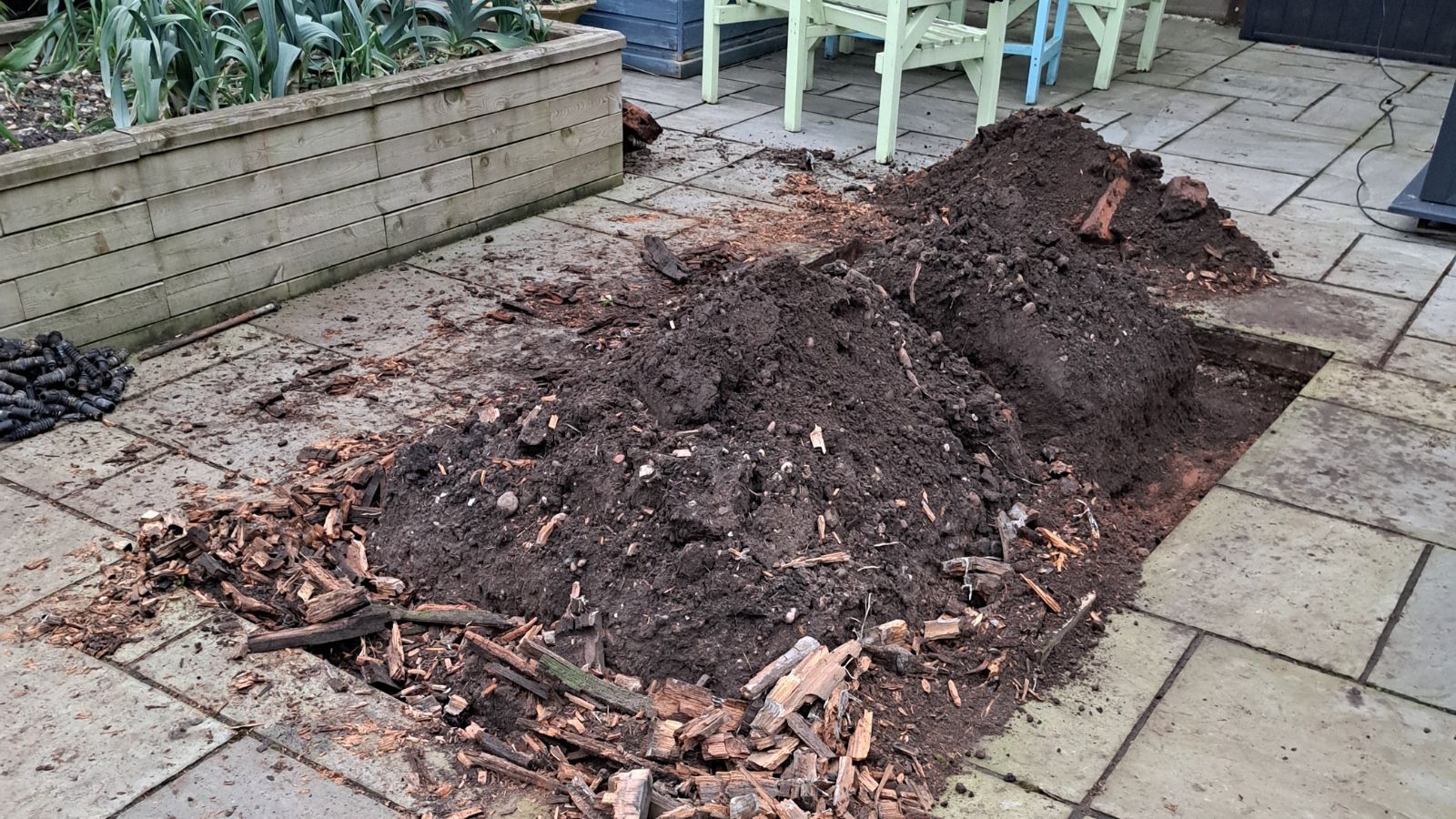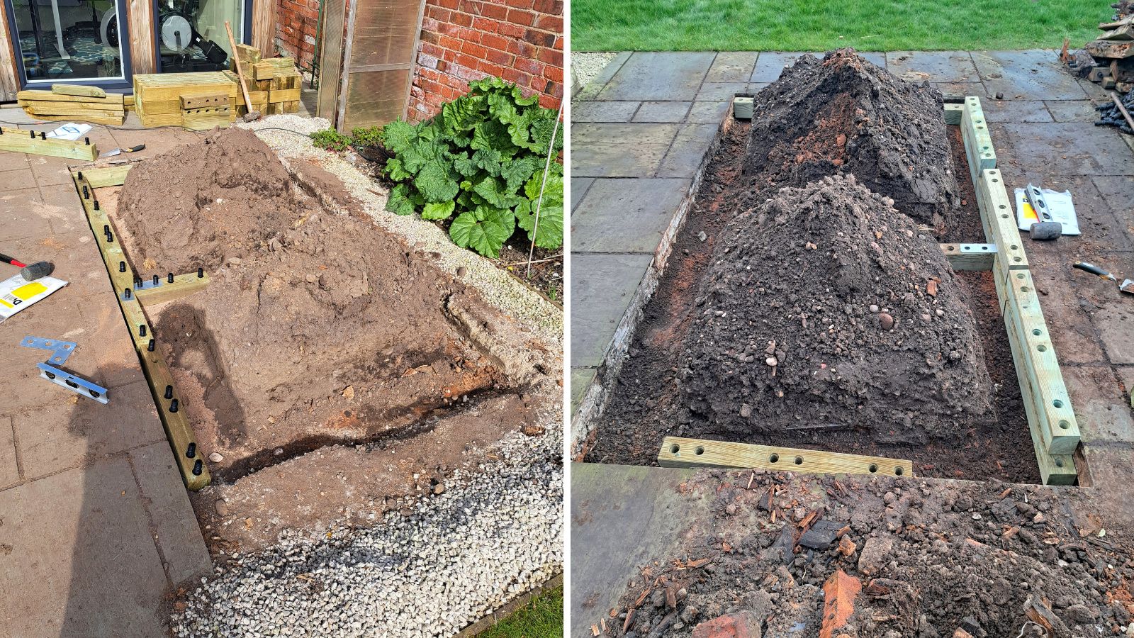 Comme vous le voyez sur l’image précédente, l’espace situé près d’une jardinière surélevée existante était une zone dallée. En ajoutant des jardinières surélevées, Ian pourrait pleinement utiliser l’espace existant et augmenter sa production de légumes.