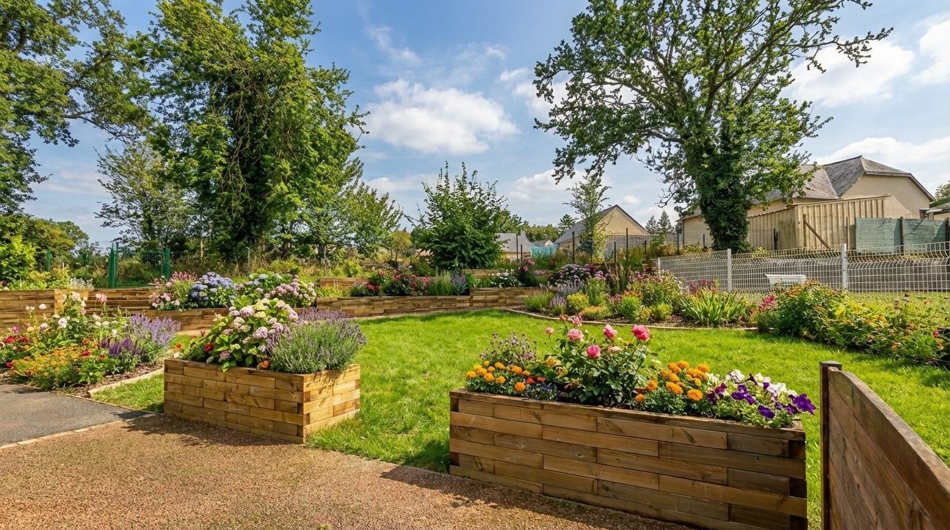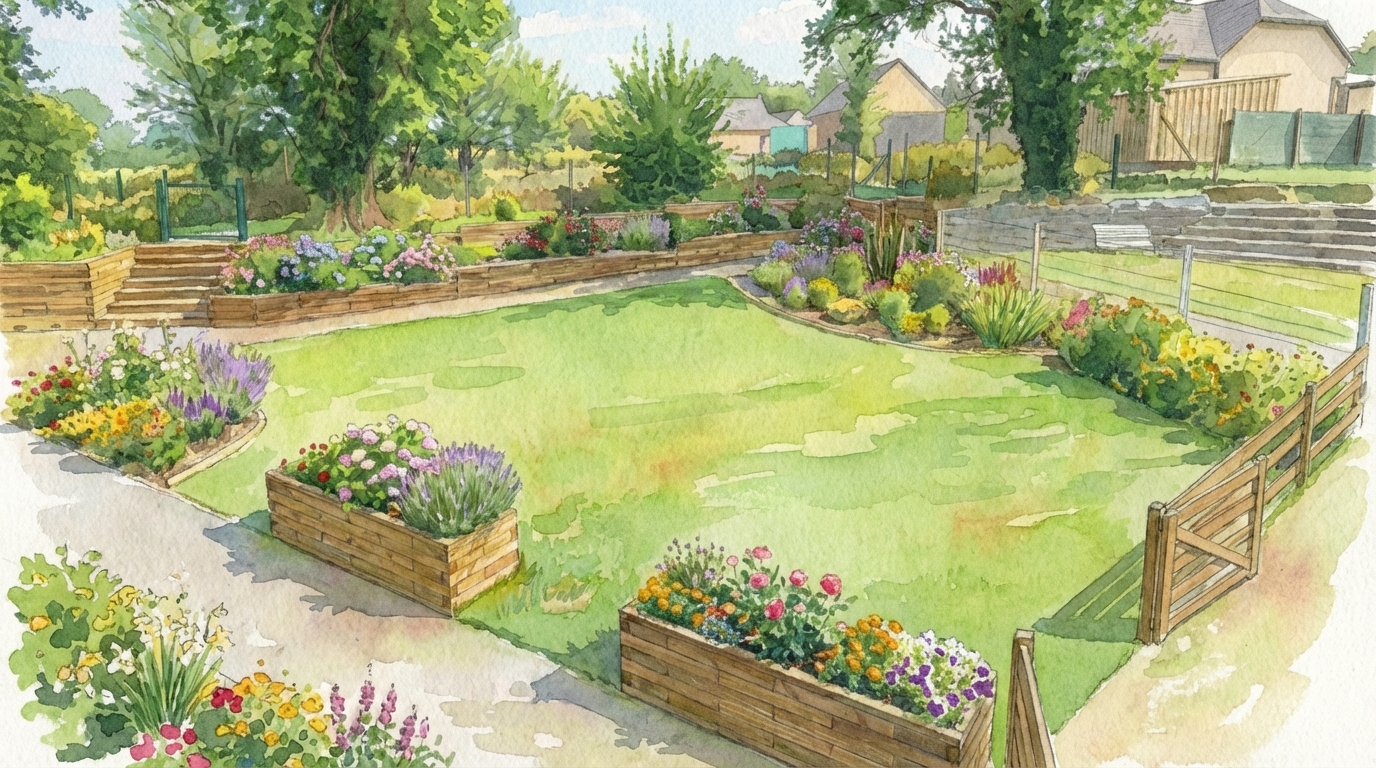 Transformation au moyen d’un mur de soutènement et de jardinières surélevées