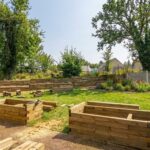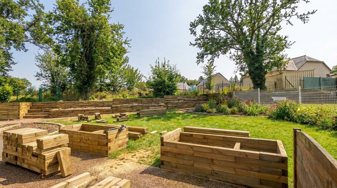 Transformation du jardin avec un mur de soutènement et des jardinières surélevées