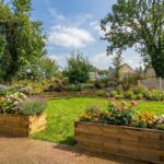 Le mur de soutènement qui longe la clôture ajoute à la fois un soutien structurel et un élément visuel audacieux, qui aide à niveler la pente tout en s’intégrant sans heurt au reste du design. Les jardinières surélevées en pourtour de gazon et sur celui-ci fournissent un grand espace pour faire pousser des plantes, des arbustes et des légumes, tout en ajoutant de la structure et en créant une délimitation de différentes zones dans le jardin. Jetez un coup d’œil à notre blog pour trouver des idées de jardinage dans des jardinières surélevées !