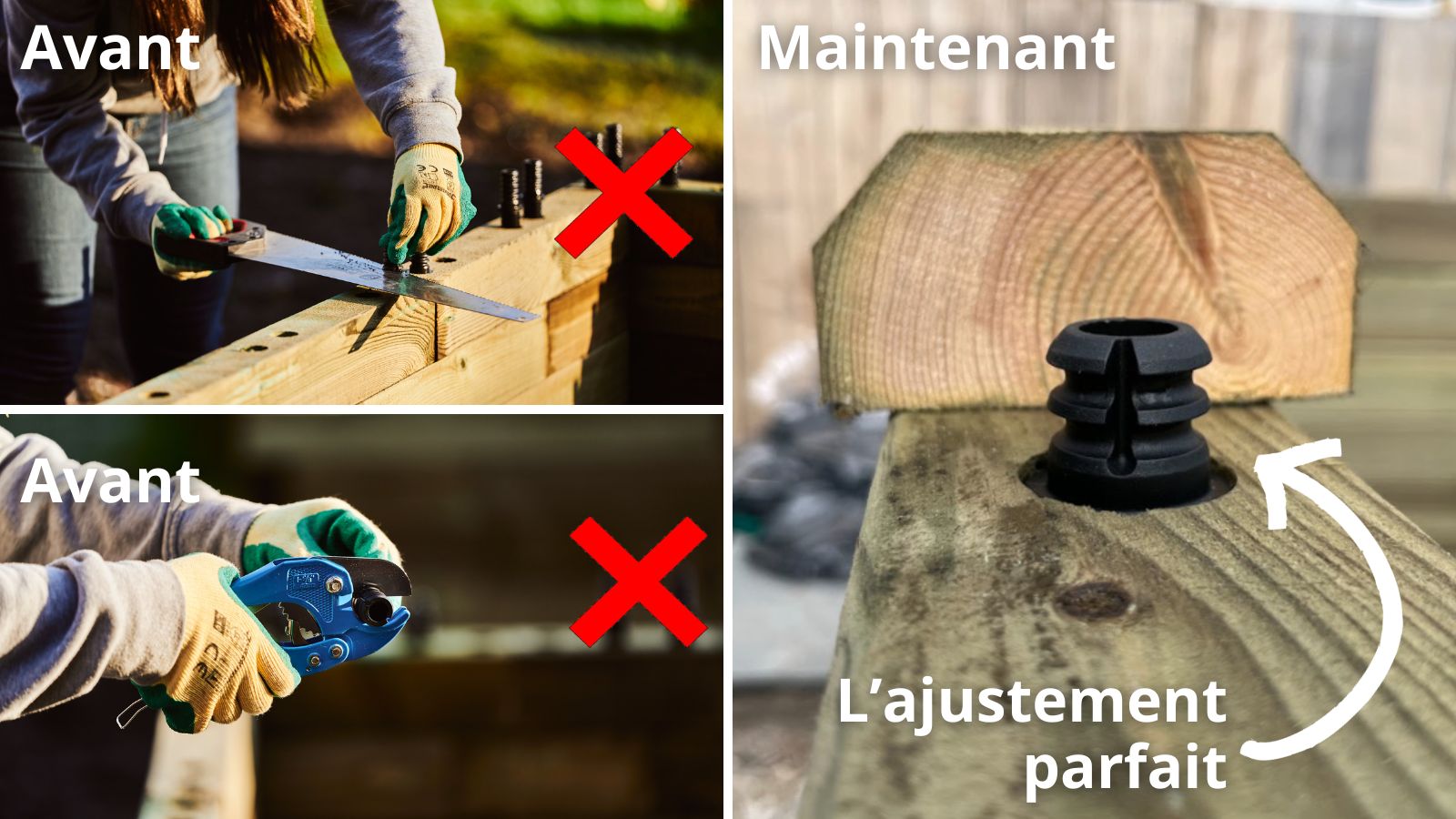 À partir de novembre 2023, vous n’aurez plus besoin de couper les goujons du dernier niveau avant de placer votre rebord WoodBlocX.