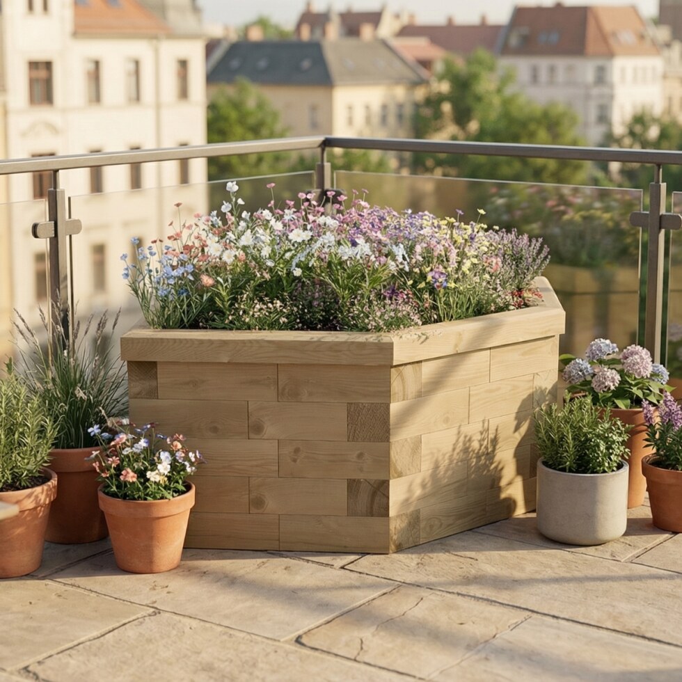 Carré potager surélevé hexagonal / 155 x 92,5 x 55 cm