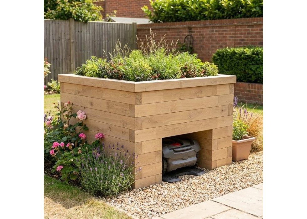 Abri pour robot tondeuse avec jardinière / 1,2 x 1,125 x 0,85 m
