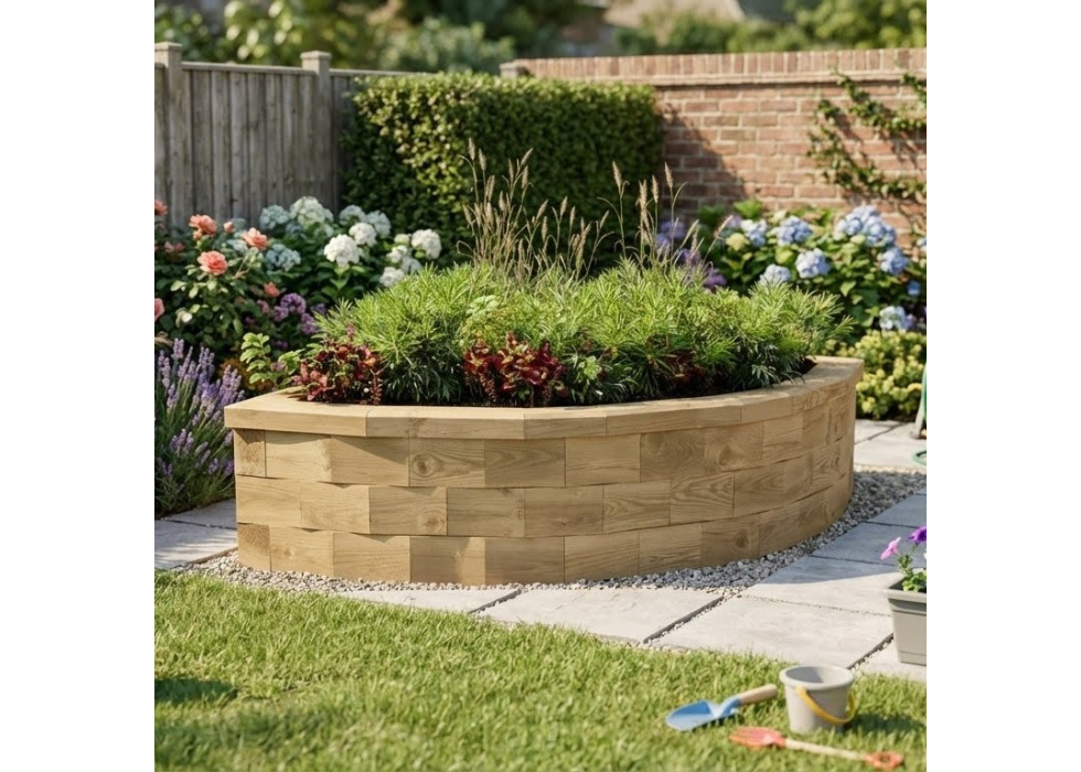 Curved Corner Raised Garden Bed / 1.125 x 1.125 x 0.35m