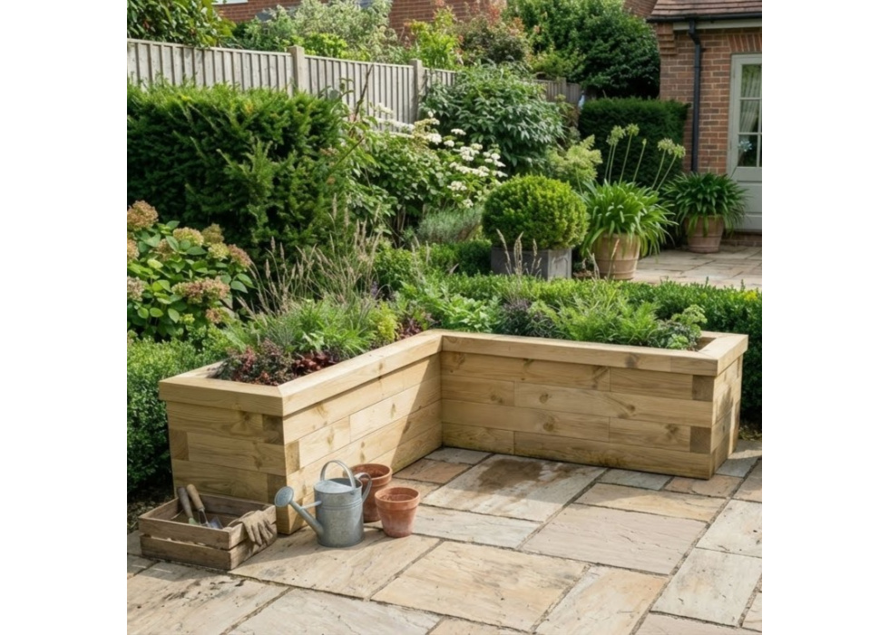 Jardinière bois d'angle en L 150 x 150 x 45 x 45 cm