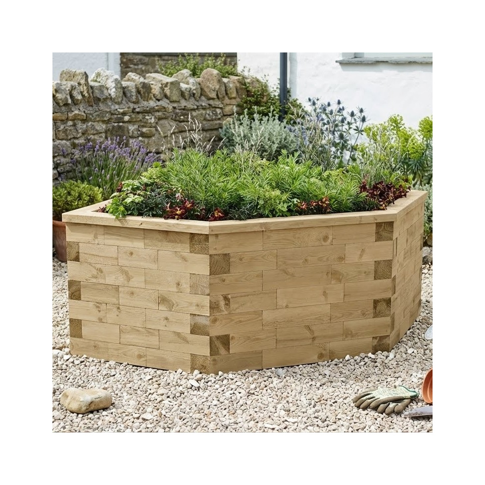 Le carré n'est plus de mise, heureusement, nous avons juste ce qu'il vous faut avec cette jardinière hexagonale! Une forme intéressante avec une bonne hauteur, assez profonde pour accueillir un petit arbre ou même un étang. Laissez place au jardinier paysagiste qui sommeille en vous grace à ce kit facile à monter. Très bonne pour votre dos de par sa postion surélevée, cette jardinière vous permettra egalement d'entretenir vos plantations de votre chaise roulante. Ces dernières se trouvent hors d'atteinte des lapins.