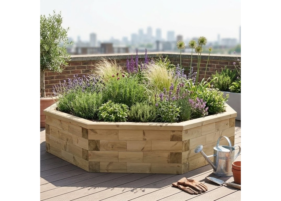 Ne vous limitez plus aux rectangles ou aux carrés, voire aux simples cercles! Nous vous offrons plus. Même avec six ou huit cotés, nos jardinières sont toujours aussi faciles à assembler! Cette configuration est egalement assez haute pour y accueillir un petit arbre au centre.