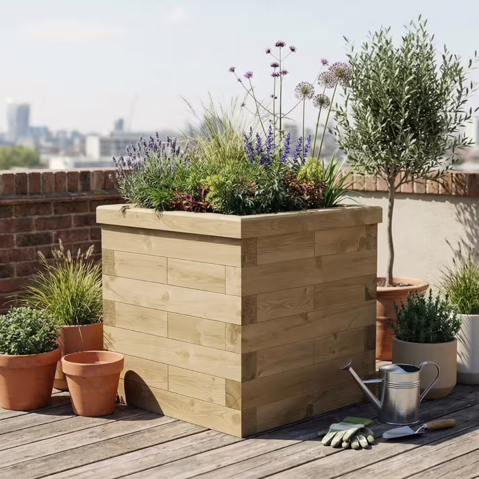 Cette grande jardinière cubique est parfaite pour toute grande sélection de plantes, d'arbustes ou même d'arbres fruitiers. La hauteur ajoutée est également parfaite pour votre dos!
