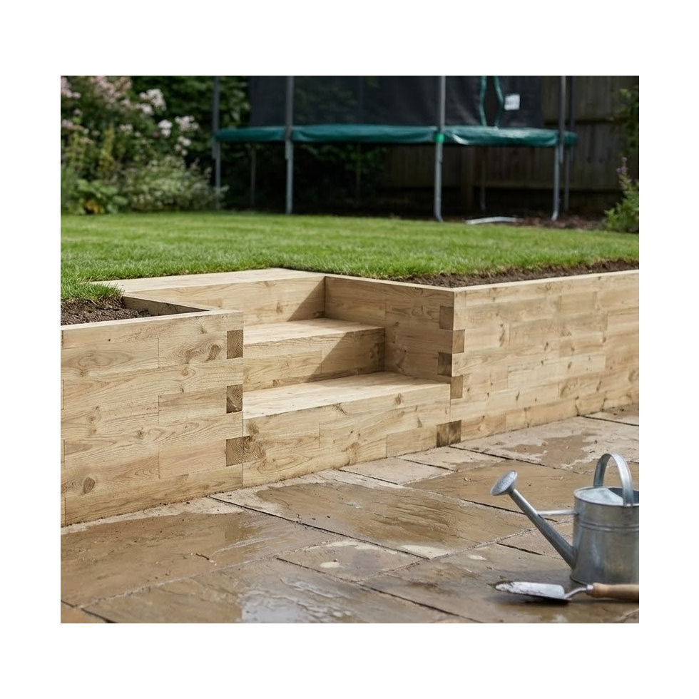 . Avec WoodBlocX pas besoin de percer, visser, pas besoin non plus d'outils électrique, ni d'eléments lourds à porter. Le montage de nos produits est à la portée de tout le monde. WoodBlocX est également une excellente alternative aux traverses de chemin de fer qui peuvent être lourdes et difficiles à manœuvrer.