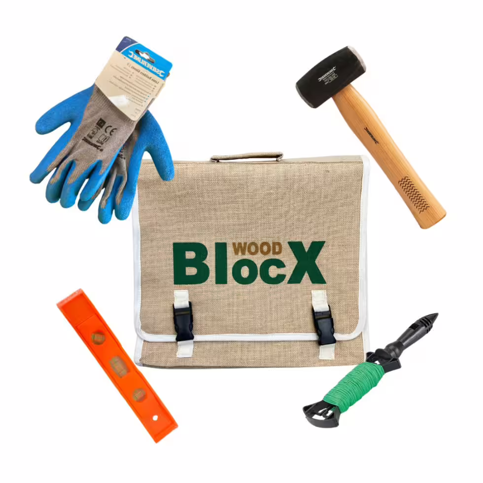 Les outils et les bâches commandés séparément feront l’objet de frais de port Parcelforce pour l’Europe de 25 euros, par conséquent, n’oubliez pas de les inclure dans votre commande WoodBlocX !